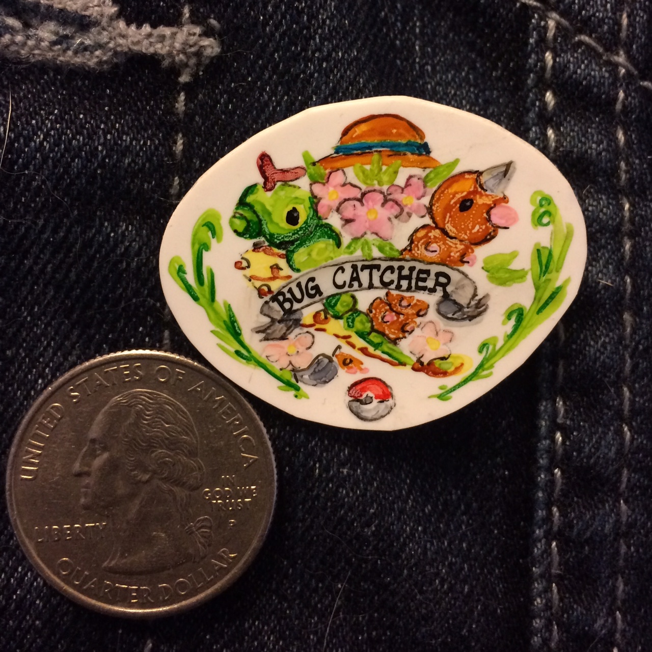 Pokemon Bug Catcher - Handmade Shrinky Dink Pin
